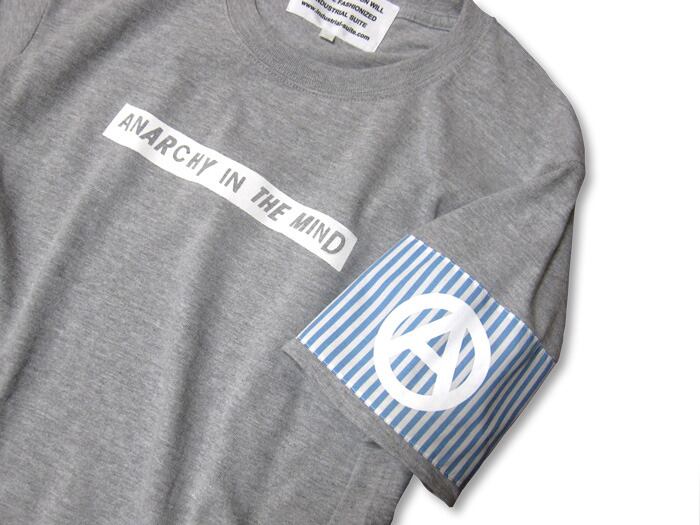ロンドンストライプにサークルAプリントが施されたアームバンドが目を惹くアナーキーTシャツ(アームバンドは縫い付けてあります)